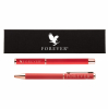 Újrahasznosított alumínium tollszett golyóstollal és rollertollal.
